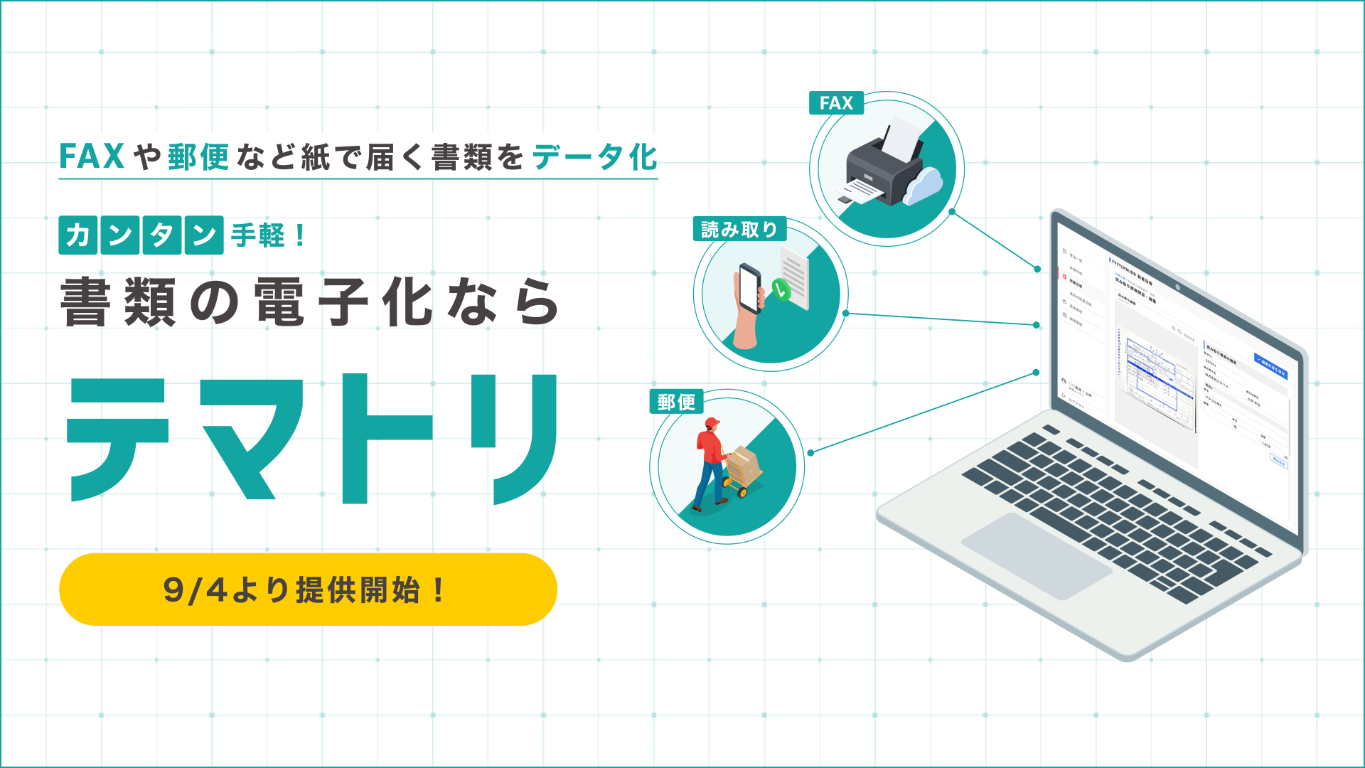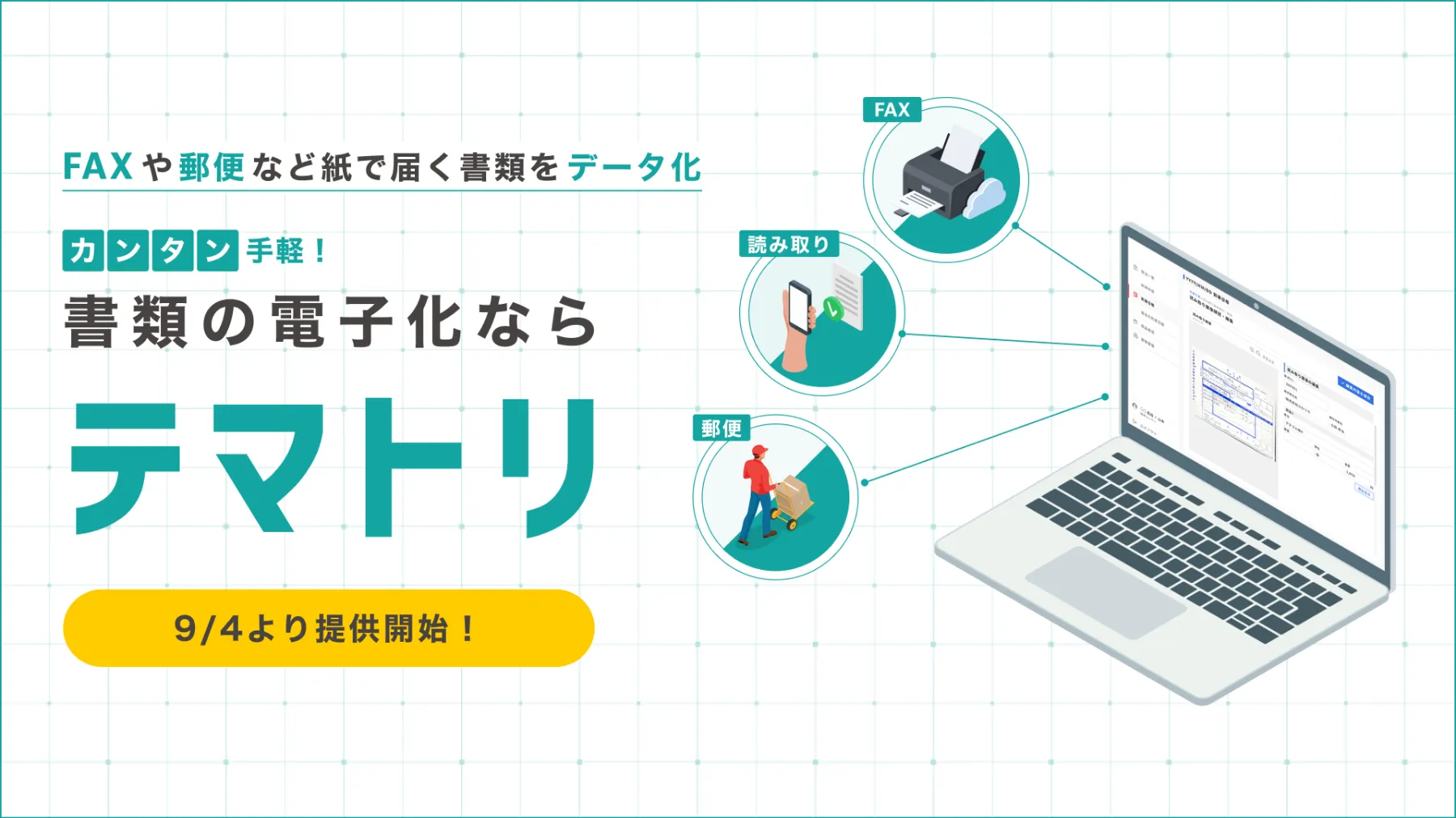 この度、株式会社ユルリカは、FAXや郵便で届く書類をAIが自動でデータ化する新サービス「テマトリ」を、9月4日より提供開始いたしました。